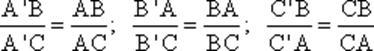 Podemos así establecer las siguientes relaciones entre segmentos proporcionales: