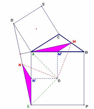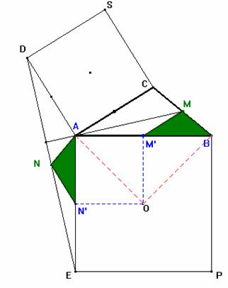 se construyen hacia el exterior los cuadrados ABPE y ACSD. Sean M y N, respectivamente