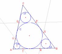 En cada triángulo, dibujamos la circunferencia inscrita de radios