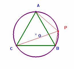 Problema 125.- Sea P un punto del arco menor AB de la circunferencia circunscrita del triángulo equilátero ABC. Se tiene que, CP=AP+BP.