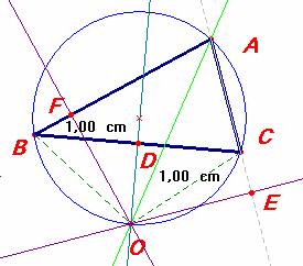 2º.- Si la bisectriz del ángulo se encuentra con la perpendicular a BC por D, el punto de encuentro O está en el interior o en el exterior del triángulo.