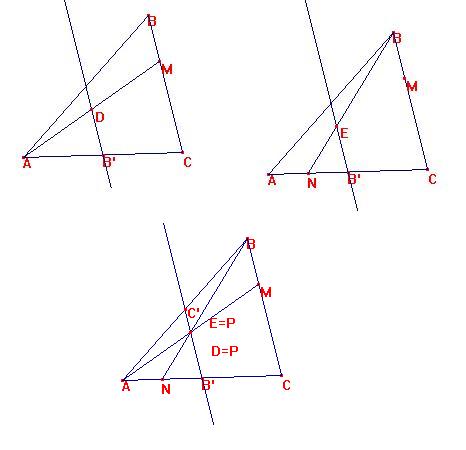 sobre la misma paralela media y ser de AM y CN, es D=E=P, y c.q.d. es C'P paralela a BM y por tanto a BC.