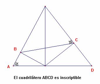 En esta gráfica el cuadrilátero ABRN es inscriptible entonces ángulo A =ángulo NRL y como AB//PQ entonces ángulo A = ángulo QPC; finalmente el cuadrilátero RQPN es inscriptible