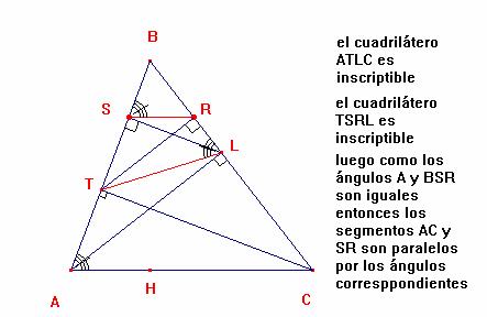 Luego los segmentos SR, PQ y MN son paralelos a los lados del triángulo AC, AB y BC respectivamente
