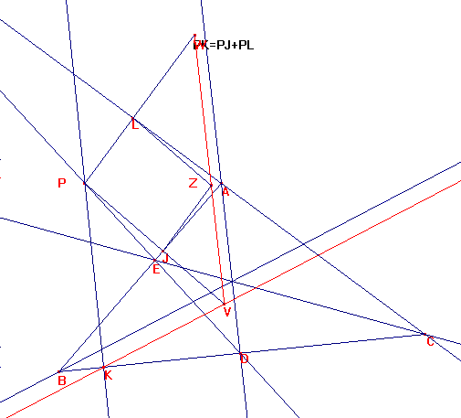 PKV y PVW isósceles tales que J esté sobre PV y L sobre PW.