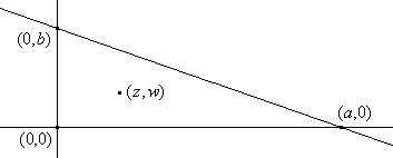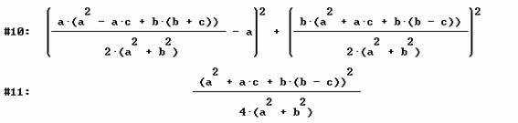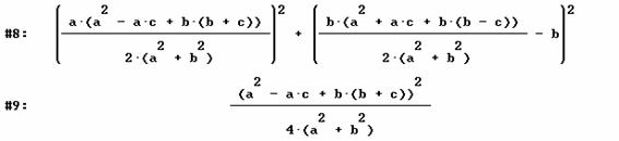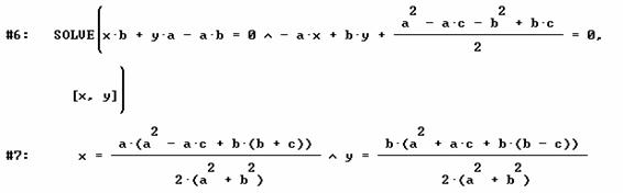 Se halla la recta que pasa por (a,0) y (0,b), y se obtiene la perpendicular a ella que pasa por el incentro (imágenes capturadas del programa DERIVE versión 5.02):