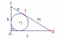 Siguen n, m els dos segments que determinen la circumferència inscrita en la hipotenusa.