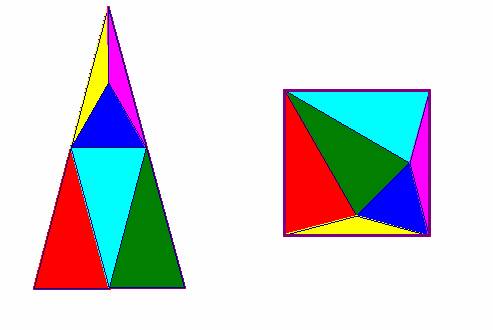uno equilátero de tal manera que se pueda construir con los seis un cuadrado.