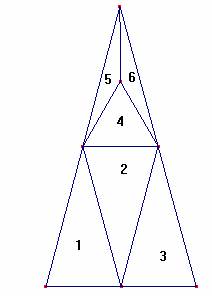 * Los triángulos 5 y 6 son isósceles con sus ángulos iguales a 15º y de base, la mitad del lado igual del triángulo inicial.