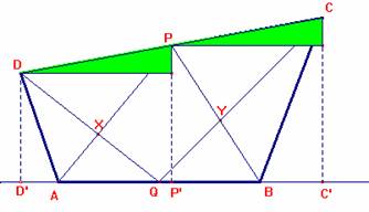que muestra la relación existente entre las áreas del cuadrilátero PXQY y la de los triángulos ADX y BCY, c.q.d.
