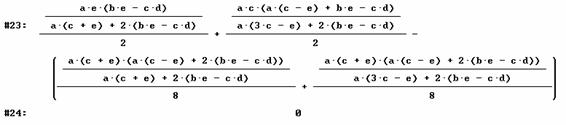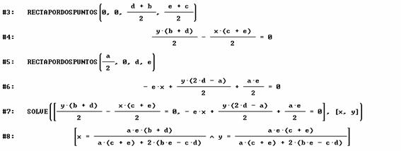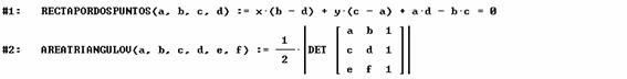 Se usan dos funciones definidas con anterioridad a fin de agilizar cálculos (imágenes capturadas del programa DERIVE versión 5.02):