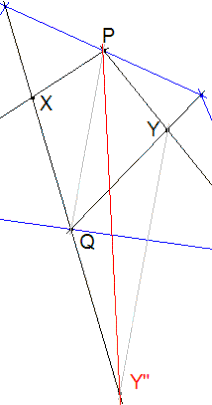 Hallamos el cateto equivalente Y”I (segundo problema previo) del caudrilátero PXQY. | |