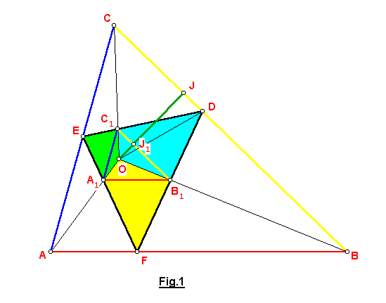 También, J1 es el punto de corte de OJ y B1C1, entonces:
