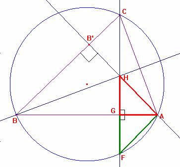 o su prolongación. F es el punto de corte de la altura con la circunferencia
