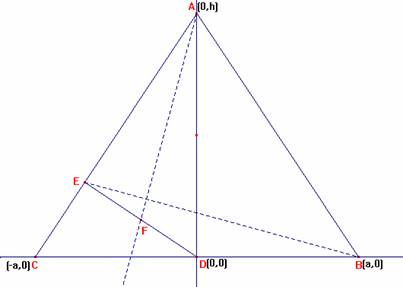 Consideraremos para nuestro propósito, el sistema de referencia afín métrico determinado por el punto D, como origen de referencia y los lados BC y AD como los ejes x e y, respectivamente. Según este sistema de referencia, los anteriores puntos tienen las siguientes coordenadas: