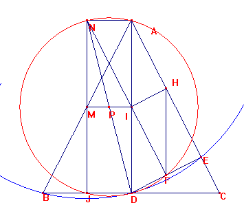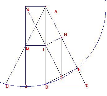 A continuación por J, punto medio de BD tracemos la perpendicular a BC y por A tracemos la