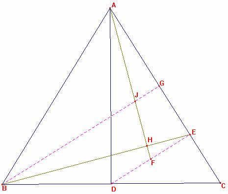 Por ello DE es una paralela media y el pie E equidista de G