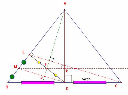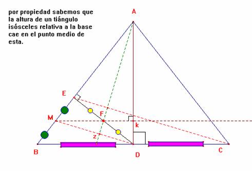 pero en el triángulo BED M y F son puntos medios que al unirlos y prolongarlos se forma el segmento MF paralelo a la base BC por lo tanto al ser prolongado corta a la altura AD en el punto K formando un ángulo 90º
