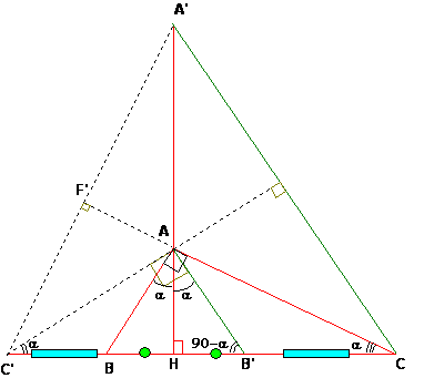 Construimos los triángulos ABB' y A'CC' siendo A' tal que AB' sea paralelo a A'C, y A' sobre la recta AH.