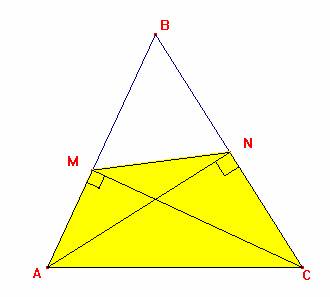 1ro) En el gráfico mostrado el cuadrilátero AMNC es inscriptible (cuadrilátero que por sus vértices pasa una circunferencia) luego AC es el diámetro de una sola circunferencia luego los punto M y N pertenecen a dicha circunferencia
