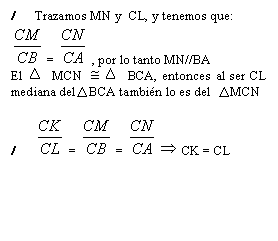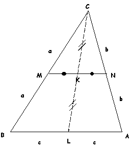 En todo triángulo, el segmento que une los puntos medios de dos de sus lados y la mediana del tercer lado se dividen mutuamente por la mitad