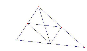 En todo triángulo, el segmento que une los puntos medios de dos de sus lados y la mediana del tercer lado se dividen mutuamente por la mitad.