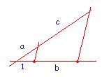 En el dibujo ab=c y c/a=b, luego colocando las medidas y haciendo paralelas podemos obtener la medida BB´ que luego trasladamos al triángulo con un compás.