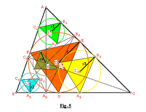 Sea el triángulo acutángulo ABC, cuyo ortocentro es H y alturas son AA0, BB0, CC0. Los círculos inscritos (I, r), (I1, r1), (I2, r2), (I3, r3), (H, r0) correspondientes a los triángulos ABC, AB0C0, A0BC0, A0B0C y A0B0C0, determinan los triángulos tangenciales internos de áreas S, S1, S2, S3, S0 correspondientes.