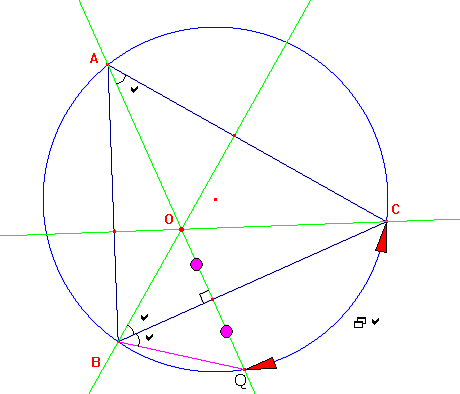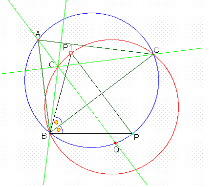 2) El ortocentro “O” del triángulo ABC pertenece a la circunferencia descrita por el punto P1 puesto que el punto P1 es el simétrico de punto P