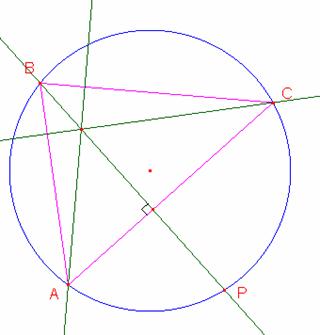 Sea P el punto sobre la circunferencia que resulta de a ver prolongado una de las alturas