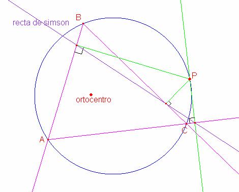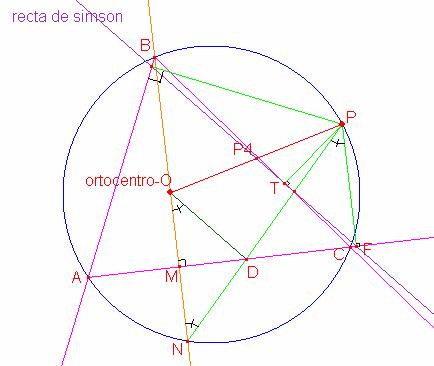 Ahora analicemos el ortocentro, recta de simson y el punto P que pertenece a la circunferencia.