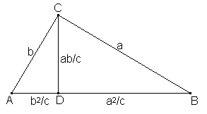 Teniendo en cuenta los triángulos semejantes ABC, ACD y CBD, podemos expresar las medidas de los segmentos AD, CD y BD de la manera en que aparecen en la figura. |
