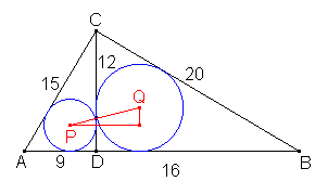 Los círculos de centros P y Q están inscritos en los triángulos