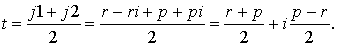 Para dar una solución diferente de la que viene en el libro de Lyúbich, usaremos los números complejos. Representemos con letras minúsculas los afijos de los puntos que aparecen en la figura y consideremos que A es el origen de coordenadas. Entonces tendremos que j1 = r - r i y que j2 = p + p i, por lo que