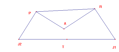 Problema 199 De la Introducción: Un día nos encontramos con un libro de matemáticas serio (T. Saati, (1963), Métodos matemáticos de investigación de las operaciones, Ed. Voenizdat, ruso) con un problema que nos pareció que había llegado de las obras de Conan Doyle o Stevenson: En éste se trataba de las búsquedas de un tesoro. Cierta persona se enteró de que en el lugar donde hay enterrado un tesoro crecen solamente tres árboles: un roble, un pino y un abedul. Para encontrar el tesoro hay que situarse debajo del abedul, (A), volviéndose de cara a la línea recta que pasa a través del roble y el pino (R y P). En este caso el roble ha de estar a la derecha y el pino a la izquierda. Luego es necesario dirigirse al roble contando los pasos. Al llegar al roble se vira en ángulo recto hacia la derecha y se da la misma cantidad de pasos que se dio entre el abedul y el roble. En este punto es necesario detenerse y clavar un jalón (J1).