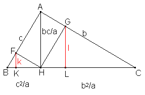 Supongamos que el cateto b=AC sea mayor que el c=AB. Llamemos k=FK, l = GL y h=AH.