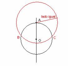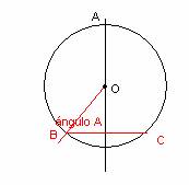 Desde O se traza una recta que forme un ángulo A con el diámetro y se consigue B. Una perpendicular a B por el diámetro da C.
