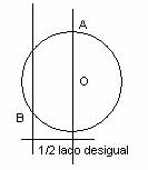 Haciendo paralelas al diámetro a una distancia de la mitad del lado desigual se obtienen B y C.