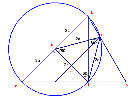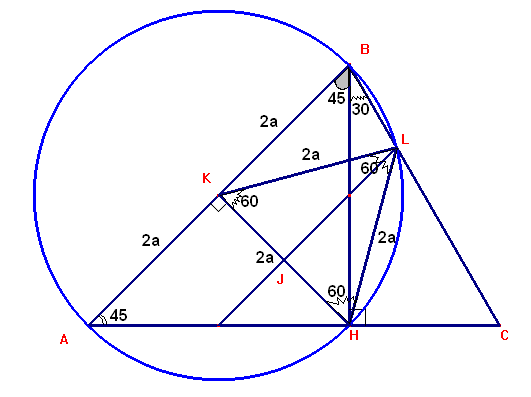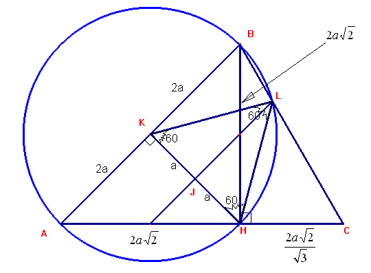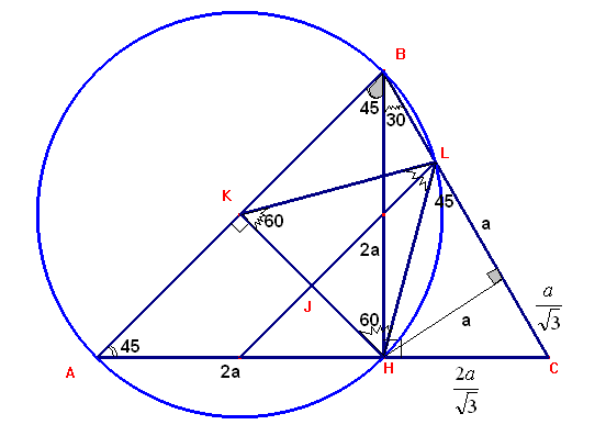 Ahora según la figura del problema determinamos que el punto L pertenece a la circunferencia circunscrita al triángulo ABH. Por lo tanto el cuadrilátero ABLH es inscriptible y el triángulo KHL es equilátero
