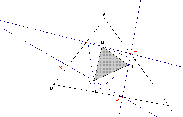 Dado un triángulo ABC y un triángulo MNP, hallar el triángulo XYZ cuyos vértices se apoyen en los lados de ABC y