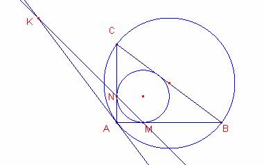 Sean M y N los puntos de tangencia del primero con los lados AB y AC.