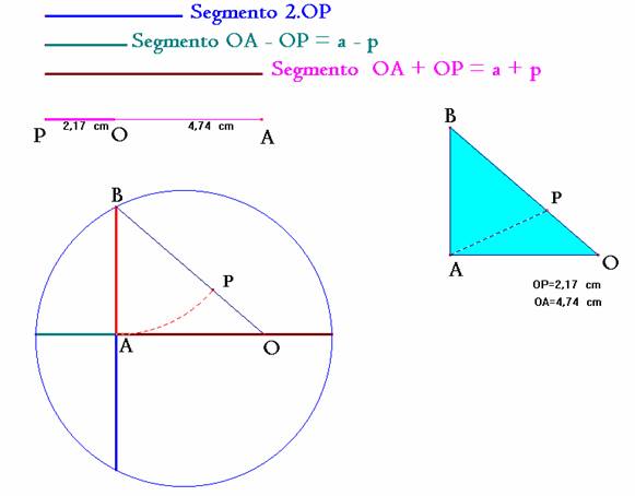 la cuarta proporcional de los segmentos a + p, a − p y 2∙p, cuya construcción no presenta
