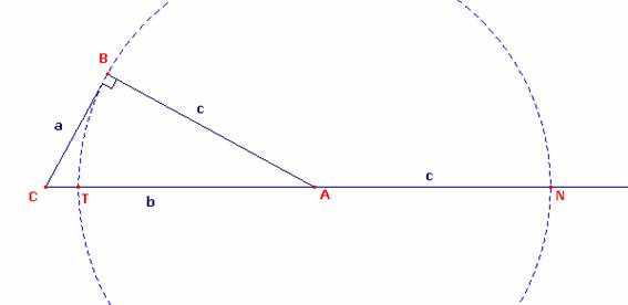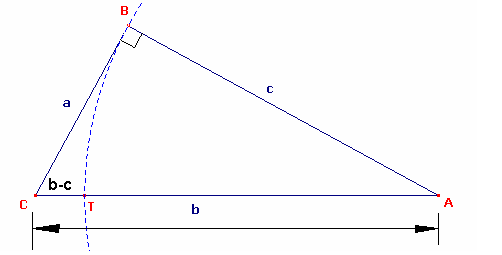 Supongamos el problema resuelto, al trazar la circunferencia de centro A y radio AB determinamos el segmento CT=b-c