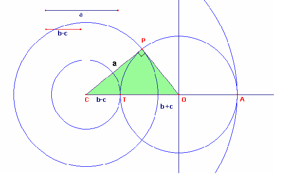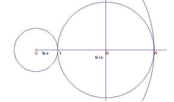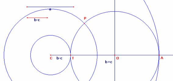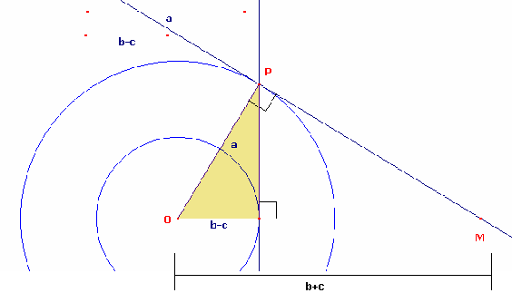 1) Construimos el triángulo rectángulo de cateto “b-c” é hipotenusa “a” obteniendo OM=b+c
