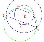 El cuadrilátero BFCE está inscrito en la circunferencia C3. Sea O el centro.