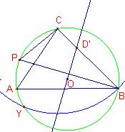 en D’. La circunferencia de centro D’ que pasa por B corta la circunferencia C3 en P.