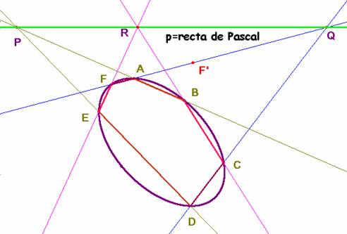 Las rectas EF y EF’ cortan ambas a BC en el mismo punto R, por tanto F=F’ y los seis vértices del hexágono yacen sobre la cónica G.