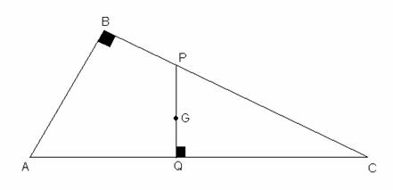 La recta PQ será por tanto a(x-a/3)-c(y-c/3)=0, cortándolo con la recta BC: y=0 y AC obtenemos