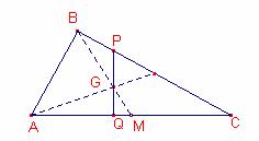 hipotenusa que passa pel punt G talla el catet i la hipotenusa en els punts P i