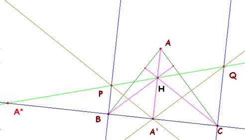 los puntos P y Q están alineados con el ortocentro H del triángulo ABC. Sidler, JC (2000):